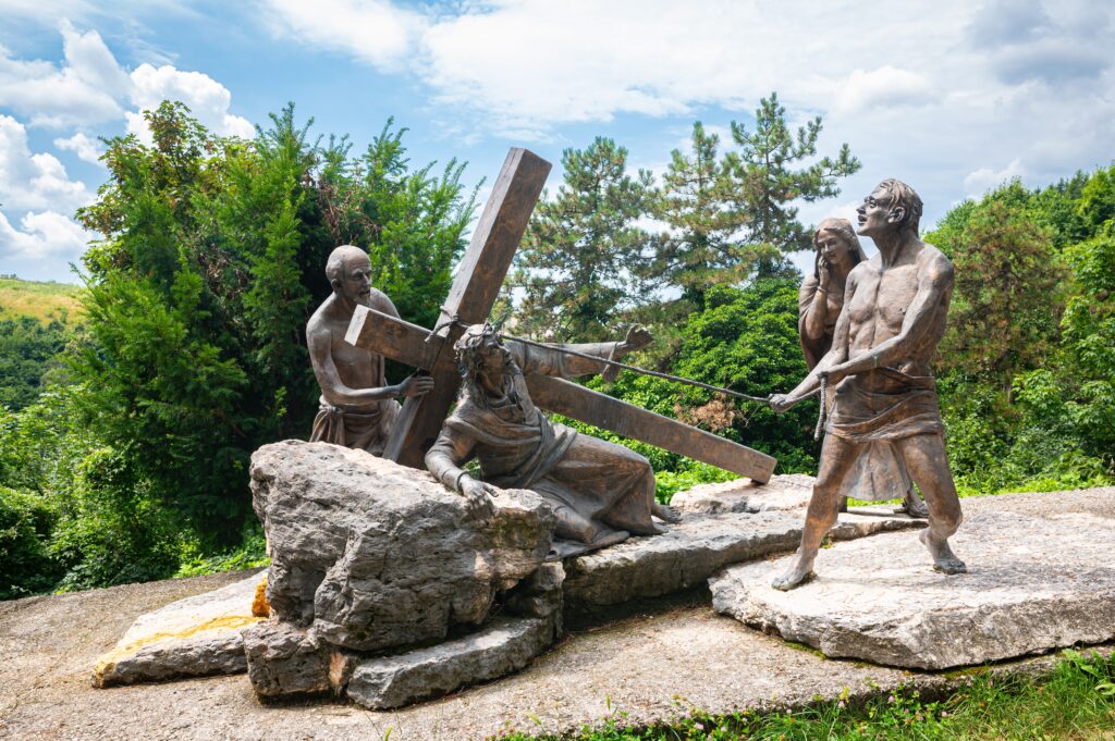 I santuari, come quello di Spiazzi, o i Sacri Monti come Varallo, offrono una delle esperienze più interessanti per chi voglia studiare il rapporto tra arte, spazio e devozione. Per esempio, a Varallo, la Passione prende forma non solo attraverso singole immagini, ma tramite ambienti, cappelle, gruppi scultorei e affreschi che coinvolgono lo spettatore in modo quasi teatrale. La terza caduta, collocata ormai a ridosso del Calvario, diventa il punto di massima intensità fisica e spirituale.